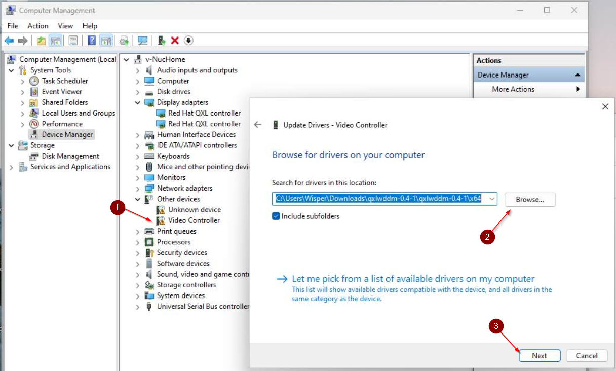 Téléchargez le pilote QXL via ce lien : qxlwddm-0.4-1.zip