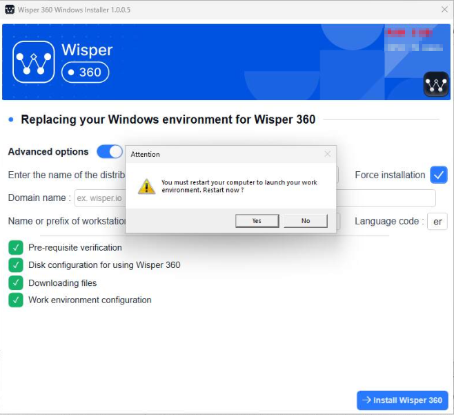 - Après redémarrage, vous pourrez procéder à la configuration initiale de votre poste Wisper 360.